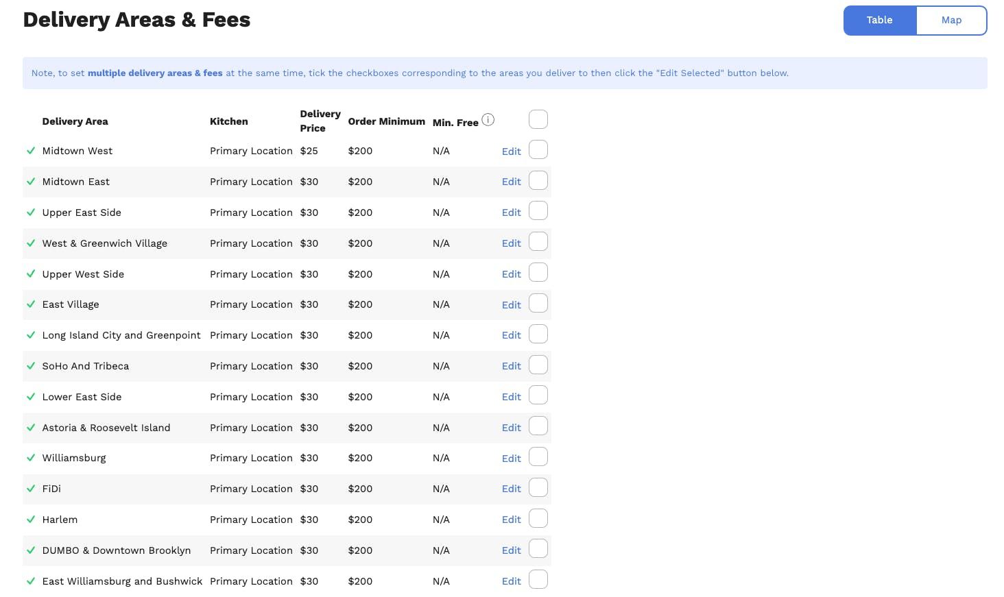 You'll see a table and map view where you can update these as you see fit. We do suggest keeping your order minimums under $350 if possible to maximize order volume!